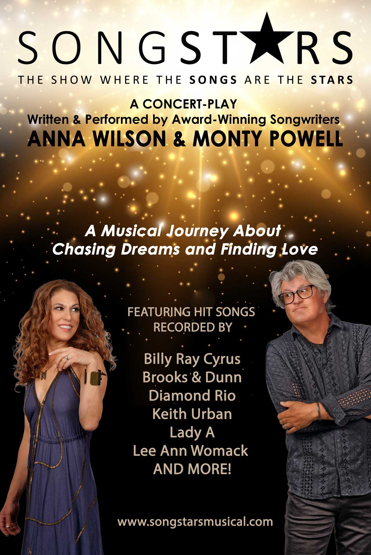 This dynamic and diverse songbird has even more things to sing about as she recently co-wrote and co-stars in a two-person musical with her Troubadour 77 partner, Monty Powell, called “Songstars” that debuted with a residency at the historic Woolworth Theatre in Nashville. Wilson remarks, “The best way to describe it is, Springsteen on Broadway meets the hit movie Once meets The Bluebird Cafe on steroids!” It’s a scripted songwriter concert-play that tells her and Powell’s personal story of chasing dreams and finding love amid the backdrop of their separate and combined Nashville pilgrimages to songwriting success.